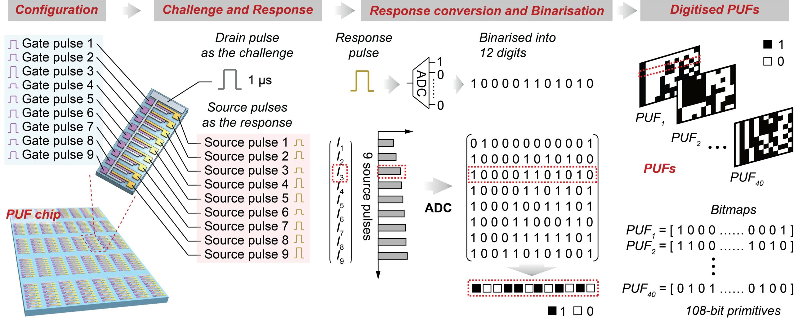 “Conventional PUFs are fixed once they are manufactured, which can make them easier to attack over time,” says Professor Hu. “Unlike conventional PUFs, our PUFs can be easily preprogrammed into different states, where in each of the programmable states, the underlying uncontrollable physical variations ensure the unclonability, securing the hardware security. The PUFs can be easily programmed on-site on command by simple erase-and-write operations of the carbon nanotube memory states. This means, in practical PUF operations, the server can send reconfiguration instructions remotely and the PUFs can generate a fresh set of unclonable challenge-response pairs.”